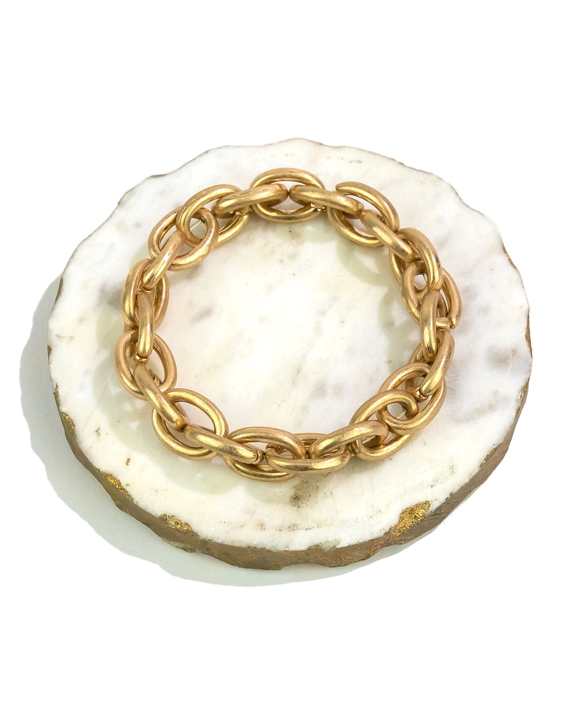Give your wrist a cool, effortless vibe with this Worn-gold Stretch Chain Links Bracelet. Its vintage-inspired worn-gold finish adds character and charm, while the stretch chain links offer a comfortable, flexible fit that moves with you. Perfect for layering with other bracelets or wearing solo as a standout piece, this bracelet brings a playful edge to any outfit. Whether you’re heading out for a casual day or adding a touch of laid-back glam to your evening look, it’s designed to keep your style fresh and fun all day long. Embrace the perfect mix of comfort and cool with this versatile accessory!